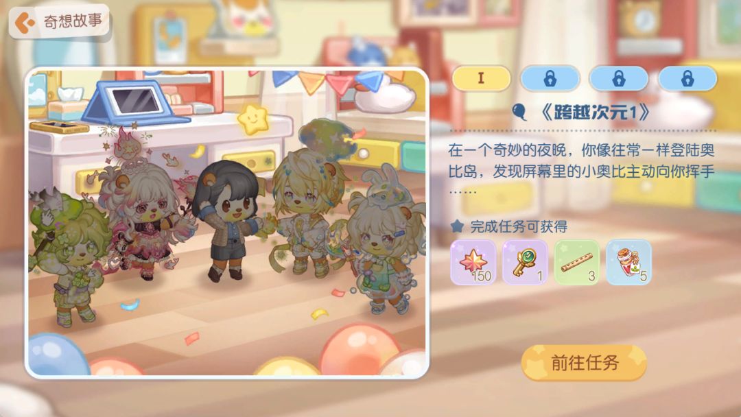 活动介绍:在如同乌托邦一样的奇想小屋里,藏着无数等待小奥比们前去探索的惊喜。随着次元门的打开,小奥比们来这里共度美好周年吧!活动期间,小奥比们可根据导览指引,获取由派对准备的打卡奖励。当对应板块下的打卡任务全部完成时,即可获得额外奖励并点亮对应区域!