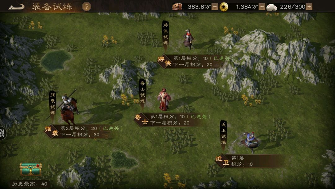 每个试炼只能上阵穿戴对应兵书的武将,这就产生了一个问题,初期武将比较少,培养度又不高,