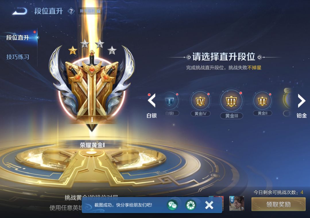 这个就是你得先打一把排位,然后会有这个活动,因为我是打了一把才有的,不知道是没看见还是怎么,然后这个升段你一开始青铜最高可以升到黄金一,赢一把就直接上去这个段位了,然后每个小段位都会有一个奖励,比如你黄金一之前的都没有做,直接打的黄金一就会获得黄金一之前没做过的任务全解锁,这个升段到黄金一之后下一次最高就是铂金一