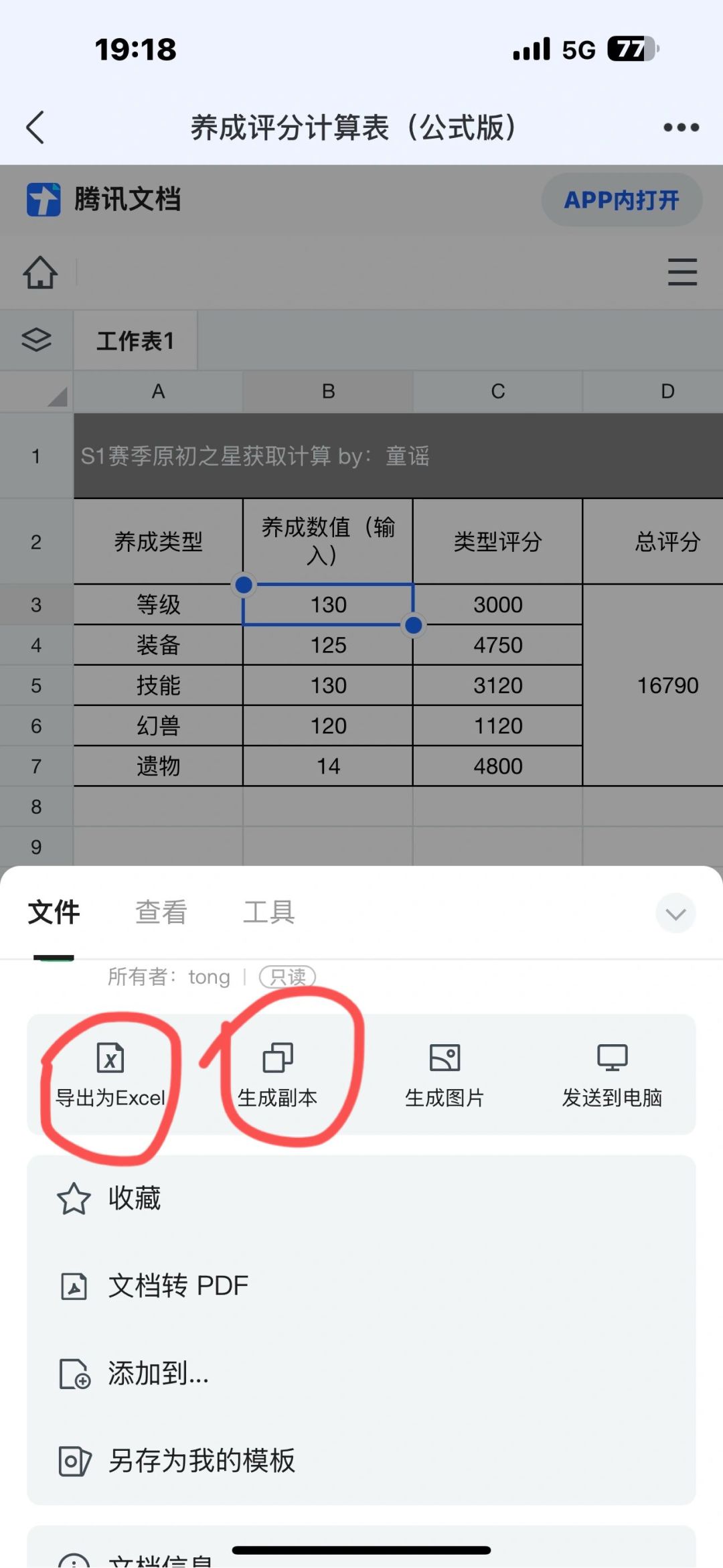 链接: 【腾讯文档】养成评分计算表(公式版)