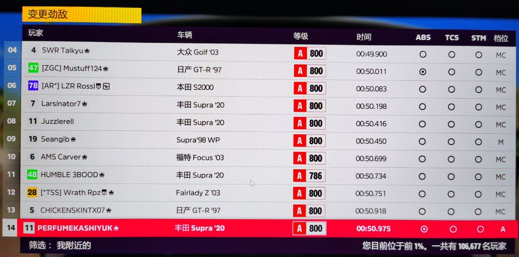 楼主是键盘自动挡,手动挡的话前十轻轻松松,小伙伴还不赶紧刷起来
