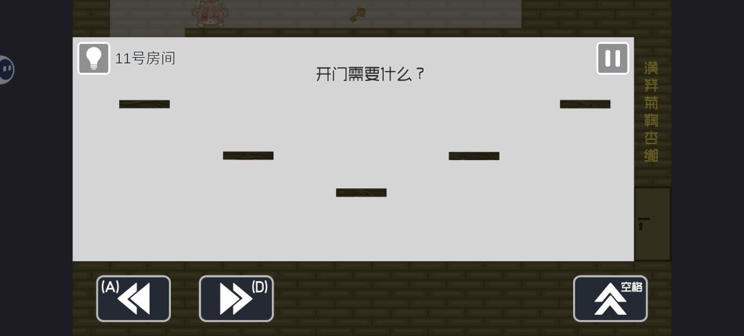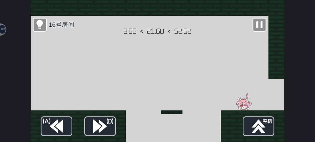 第16关,第一个数字是按右时间,第二个数字是按跳跃键时间,第三个数字是左键时间。在左边跳跃蹭墙再过来