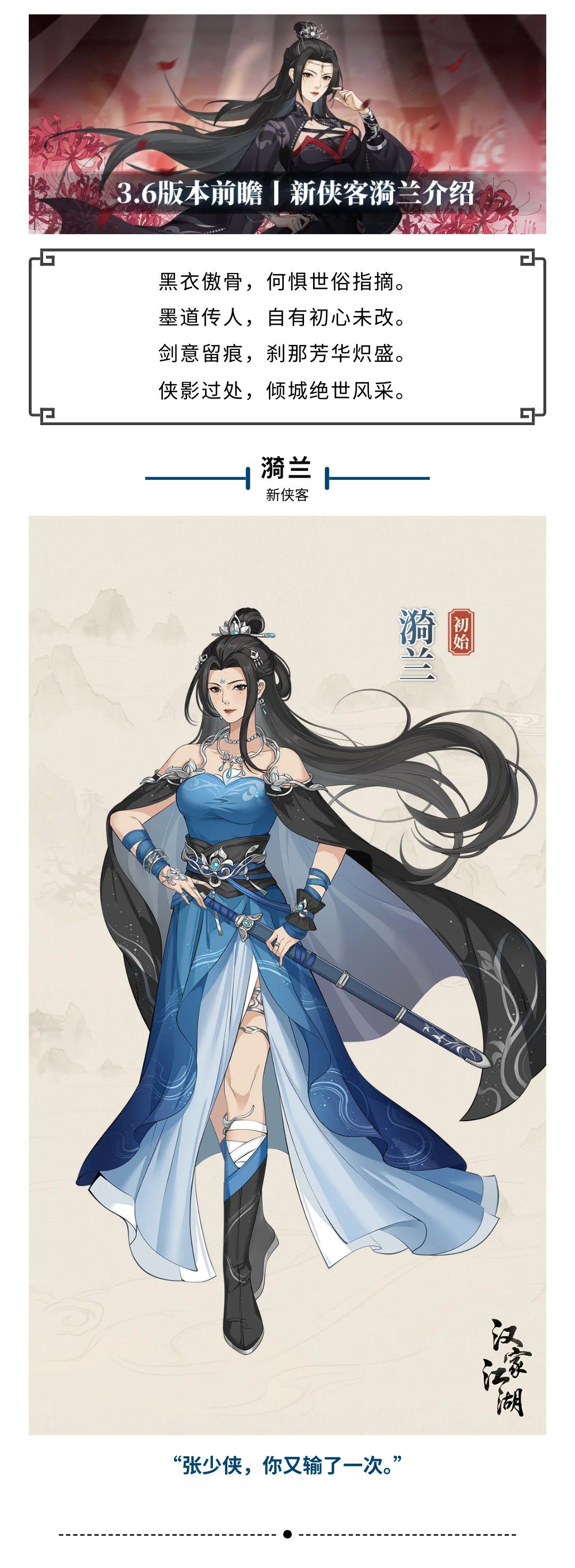 【汉家江湖】版本前瞻 | 新侠客漪兰介绍