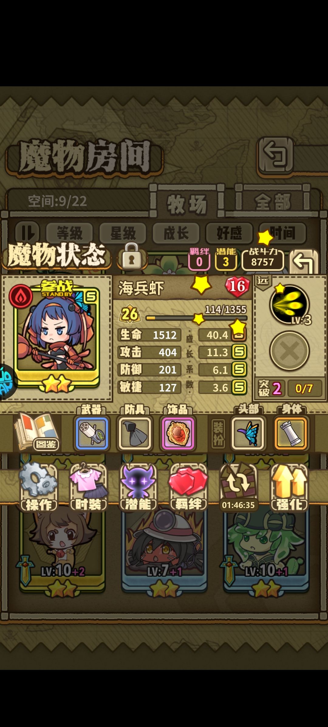 主力队,目前准备练这几只魔物