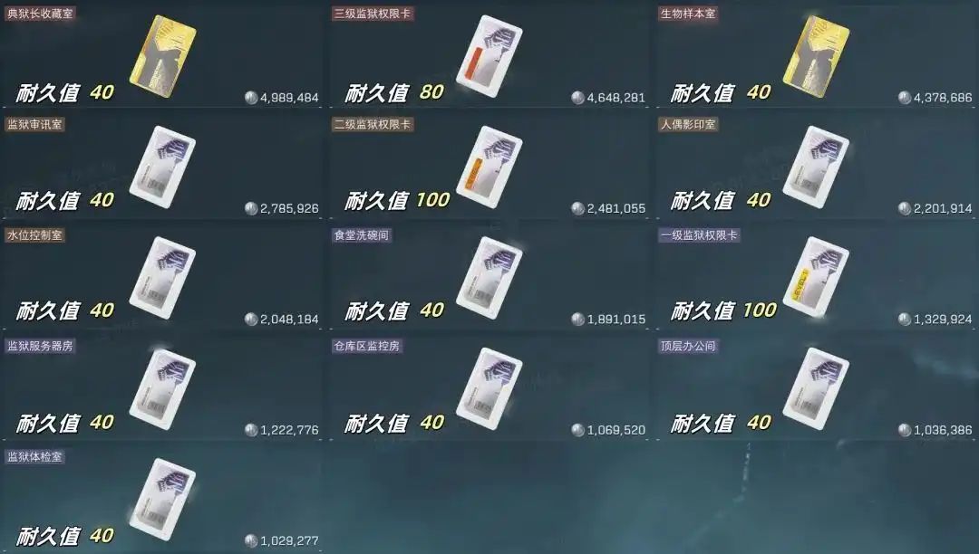 《一级监狱权限卡》必备,好几个出生点都可以直接刷卡出,80W左右入即可