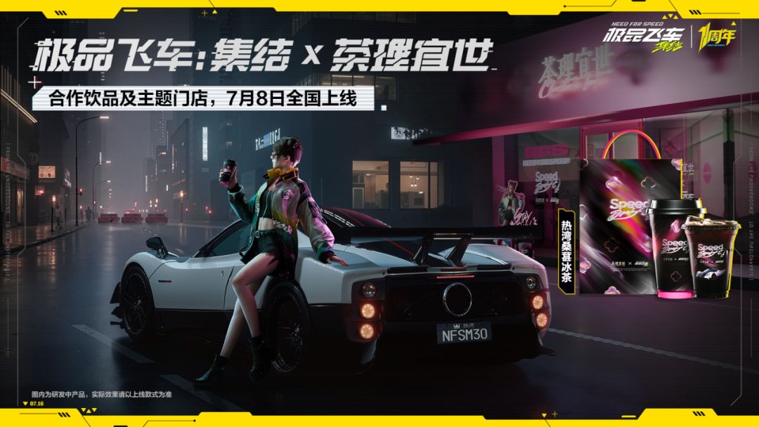 7月8日起,《极品飞车:集结》与茶饮品牌茶理宜世联手搞事情啦~合作饮品“热湾桑葚冰茶”将席卷全国门店!