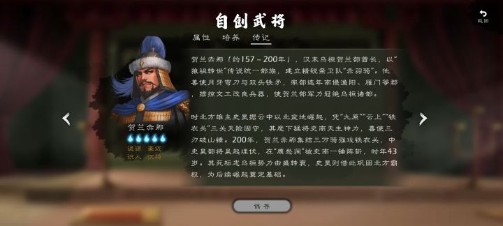 贺兰赤那(约157-200年),汉末乌桓贺兰部酋长,以“狼祖转世”传说统一部族,建立精锐亲卫队“赤羽骑”。他善使月牙弯刀与双头铁矛,率部连年南侵渔阳、雁门等郡,掳掠文工改良兵器,使贺兰部军力冠绝乌桓诸部。