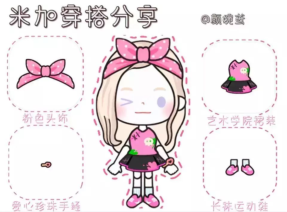 第③套穿上这么俏皮可爱的风格会是什么感觉呢?给我个人的感觉是即有着甜甜的感觉,又有酷酷的感觉,喜欢甜酷的伙伴们有福了,喜欢甜酷的伙伴们千万不要错过!非常推荐大家这款即甜又酷的穿搭,粉色系发夹+甜心手环+风艺格系裙子+粉色运动鞋
