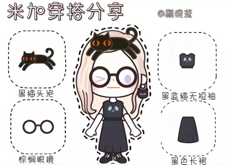 第②套穿搭我可以说明强烈推荐!不论是上衣+下裙的搭配,还是整体的美观,都十分吸引注意力,它的黑色素材质配合,给人一种特别像大小姐一样,正度过着每好的下午茶一样,喵喵头孢+猫咪耳环+黑色高跟鞋的融合穿搭分享!