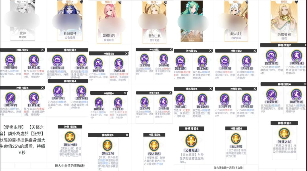 有兄弟想看看神格技能,画质一般大家凑合着看吧,神格很多角色的都一般,优先搞队伍的主C,例如炎魔加百列乌鸦等。部分冷门角色就没放,画质有限,一切以国服上线为准。