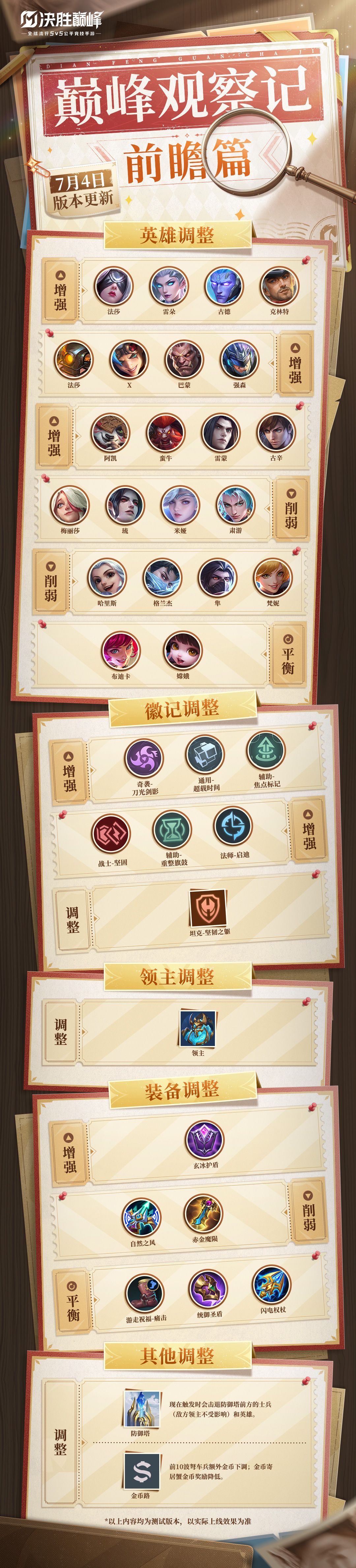【决胜巅峰】7月4日版本更新优化调整一览丨巅峰观察记