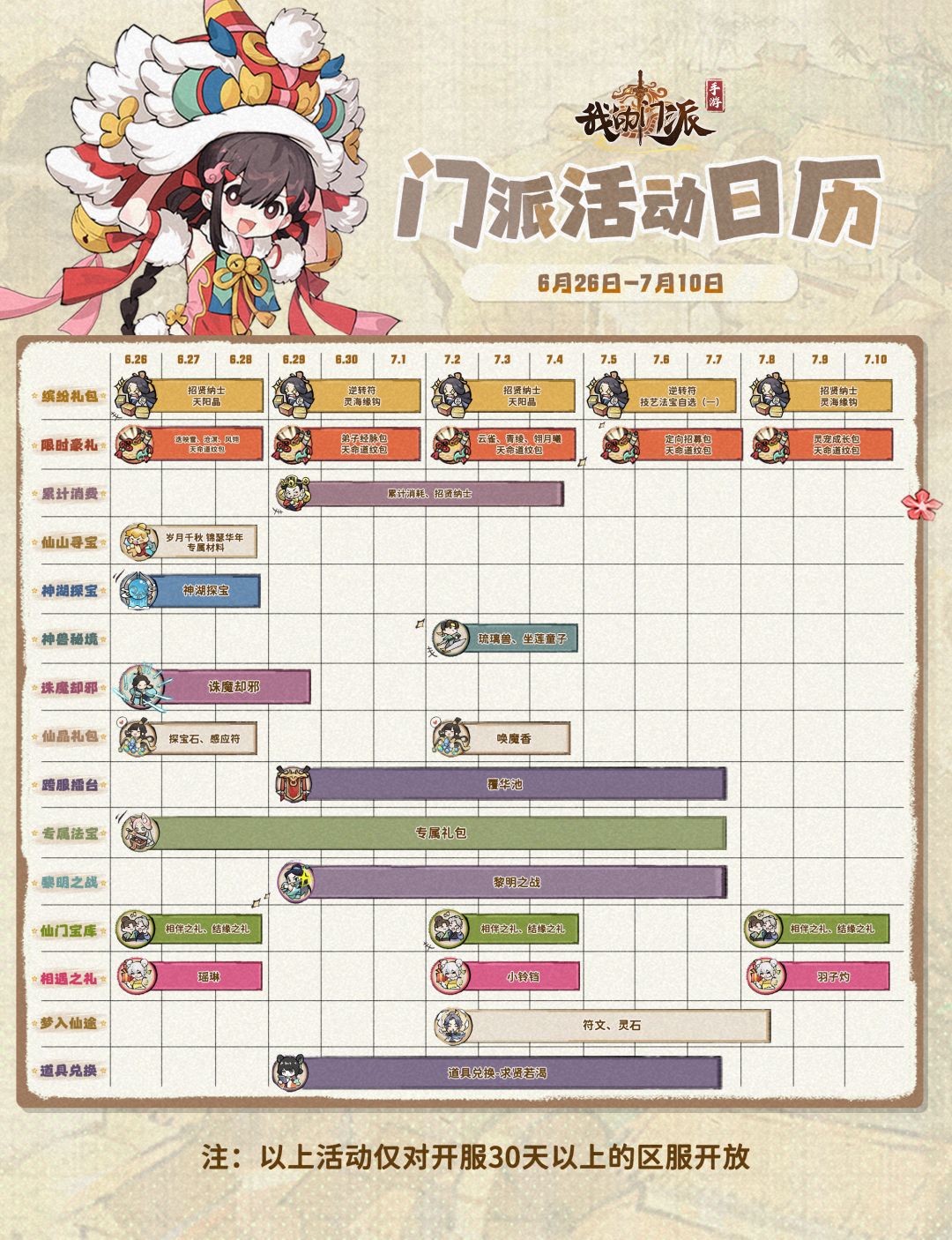 「门派活动日历」6月26日—7月10日