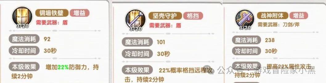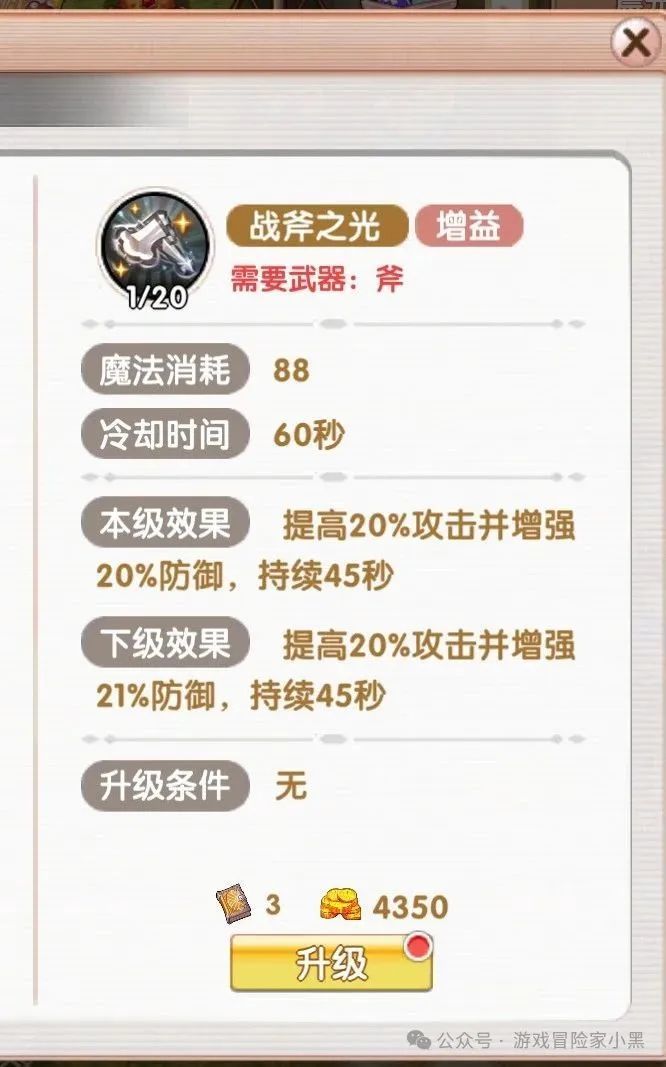 Buff技能唯一性: 「战斧之光」和「光芒圣剑」是战士唯二不能无限续杯的属性Buff!其他增益技能基本可以无缝保持。