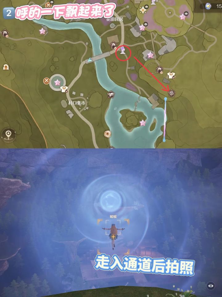 走至任一隧道,漂浮起来就可以拍照即可