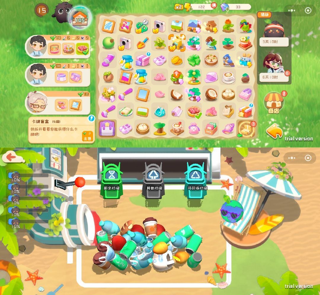 💎游戏玩法:合成、修复建筑、搭建家园、许愿池、科普环保知识等