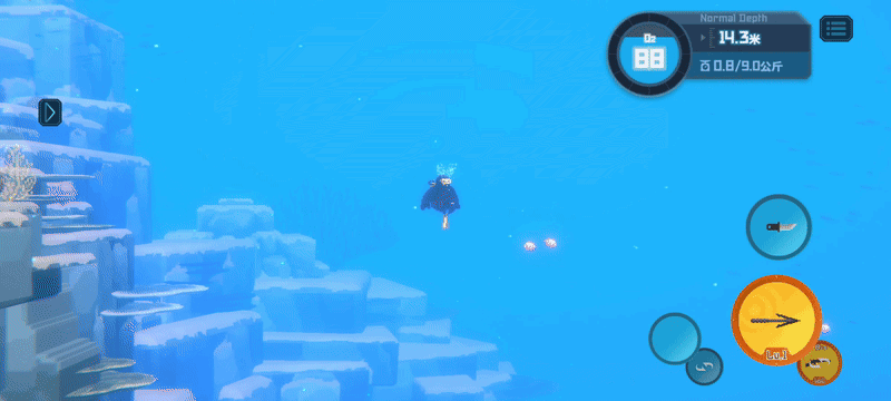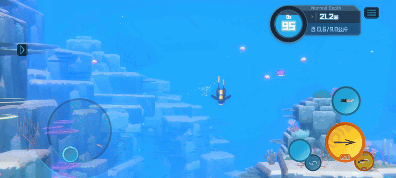 不过有些潜水员尝试过后,感觉当前的加速操作不够明显,容易发生未察觉自己已在加速的情况,进而提出了将加速移动制作一个单独按键的建议。我们征询了内测试玩过的潜水员与和核聚变现场试玩的反馈,不过并未达成统一的倾向:一部分潜水员觉得单摇杆操作方便易上手,而另一部分玩家则觉得单独按键不易误触、更明确自己是否在加速中。