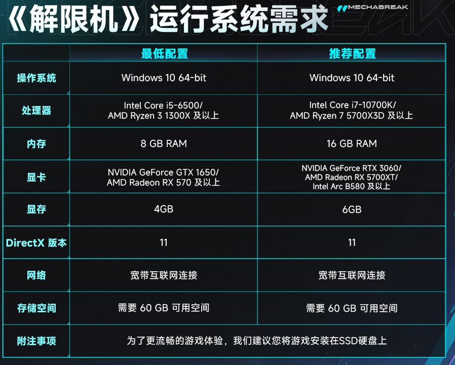 《解限机》推荐配置要求说明 高画质需要什么配置