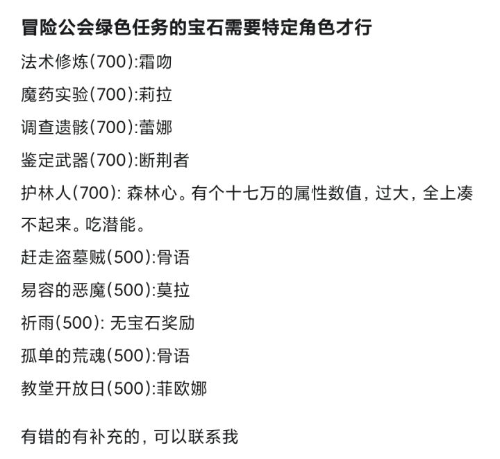 冒险公会的宝石任务需要特定的角色才行