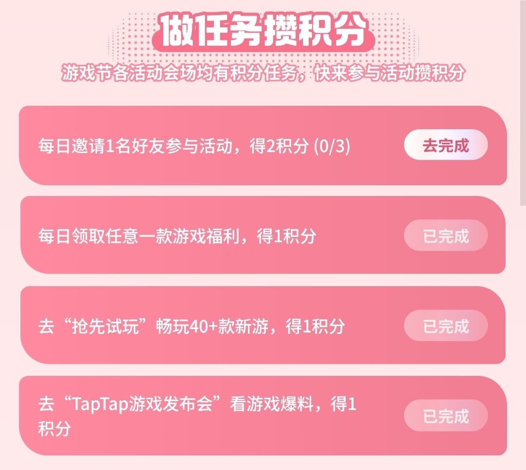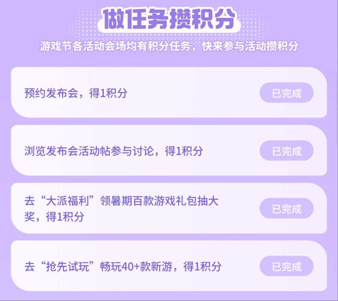 2️⃣“游戏发布会”任务可获得4积分【紫色背景】