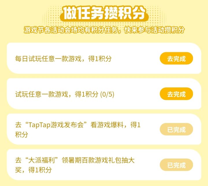 3️⃣“抢先试玩”任务可获得8积分【黄色背景】