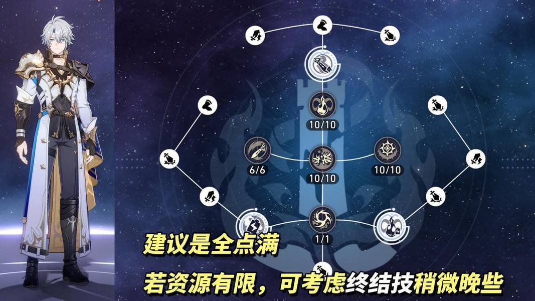 加点顺序:战技>天赋>普攻>终结技。白厄的主要伤害来自于终结技变身后的强化战技,优先加点。终结技倍率虽高,实际全局下来频次太低,并未贡献多少伤害。※行迹属性“37.3%暴击伤害、12%暴击率、5速度”,尽量确保实战往满暴击率去搭配~