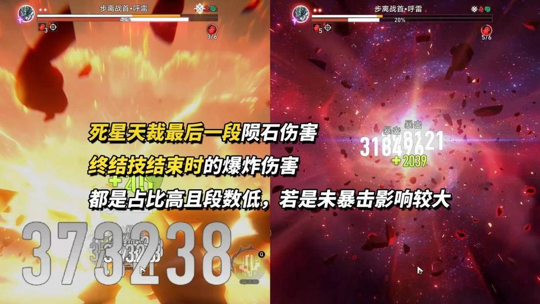 【强化战技充能】进入变身后,主要观察最右侧技能「死星天裁」,在其旁侧会记录当前毁伤层数,满4层时施放会消耗并大幅提升技能伤害。可通过这3种方式获取:秘技提供2层、强化普攻2层、强化战技一「弑魂焚诏」获得等同敌方数量的层数。※毁伤层数未耗完也会在本场战斗中保留,下次终结技时可继续使用~