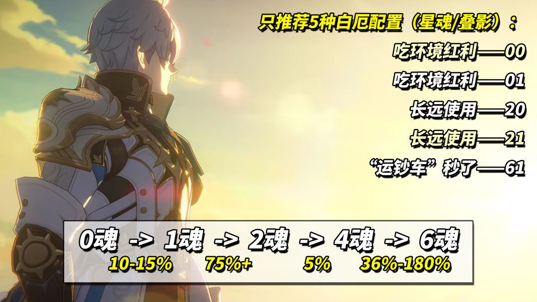 冻梨只推荐5种白厄配置(星魂/叠影):00、01、20、21、61。