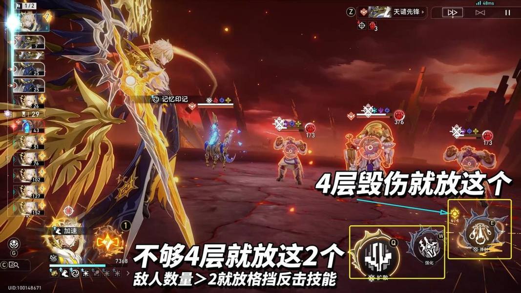 「星魂4」弑魂焚诏自带4层弑魂之炽,反击倍率提高。考虑到需依靠普攻与反击来获取毁伤层数,实际操作就变成,0-3魂时敌方3个及以上目标用反击,4魂则是2个及以上用反击。总输出数值提升很小,单纯有更多机会看到那夸张的反击特效~