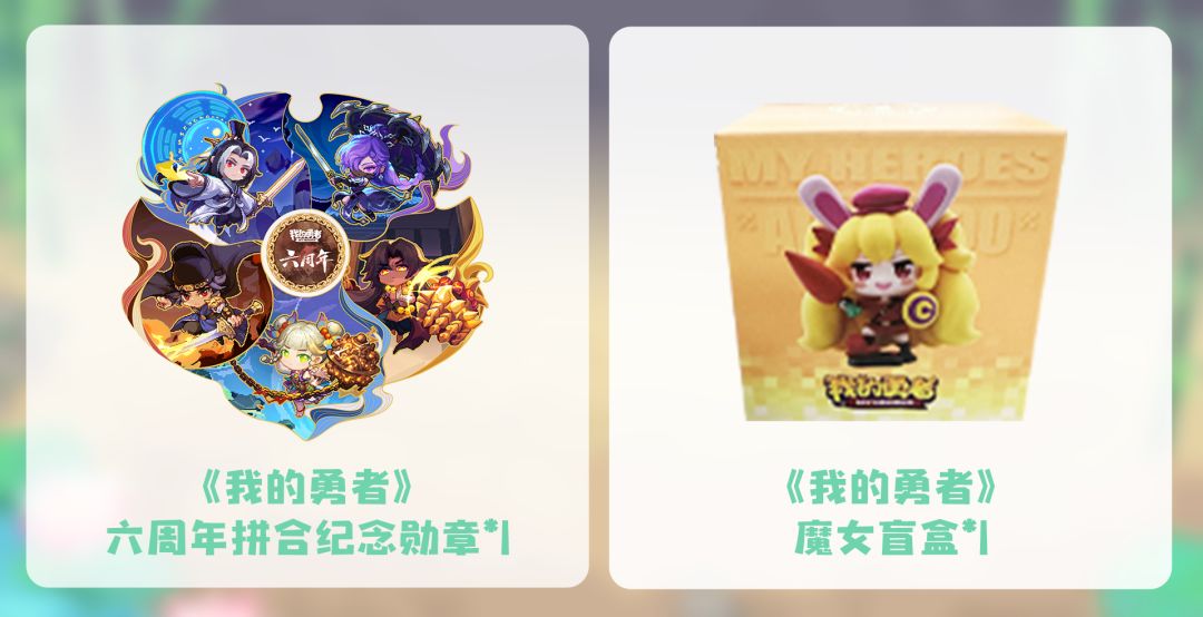 10套【六周年拼合纪念勋章(简称:六周年勋章)】和10个【魔女盲盒】