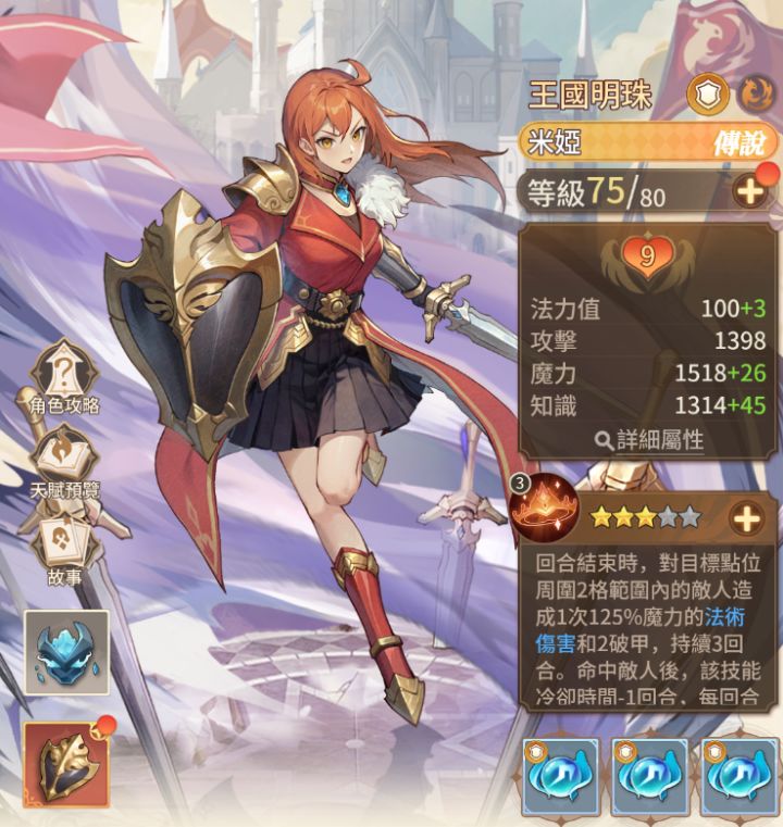 打法:米娅的操作确实非常简单了…看到怪物直接点技能后,等待炮击结束就好了。适时用一下冲锋打打伤害就行。也可以尝试拉足够多的小怪到身边,用盾牌挡伤害,炮击收头。当然,玩到后期也需要合理分配好技能释放,一味看着炮击轰下来而不注意蓝量的话很容易会陷入缺蓝的情况。