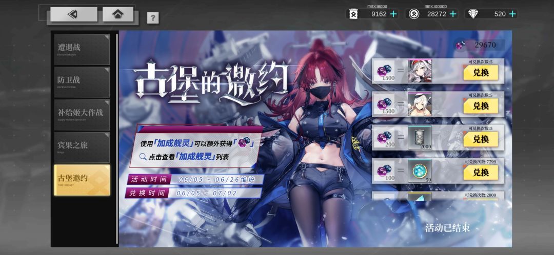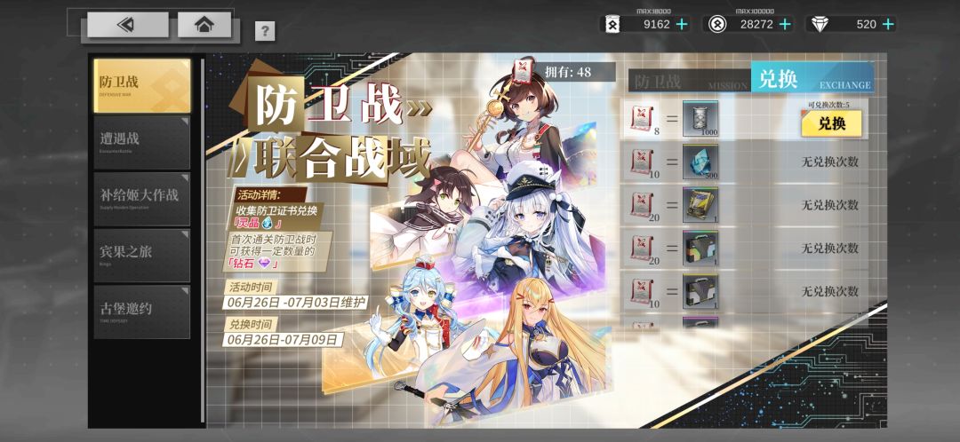 防卫战明天到期,不过兑换期还有几天,油更新后再换。不过注意兑换券要够。不够就打两圈。
