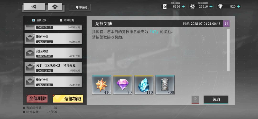 含油邮件,到期的就提取吧,能保存到保存到双倍经验期。
