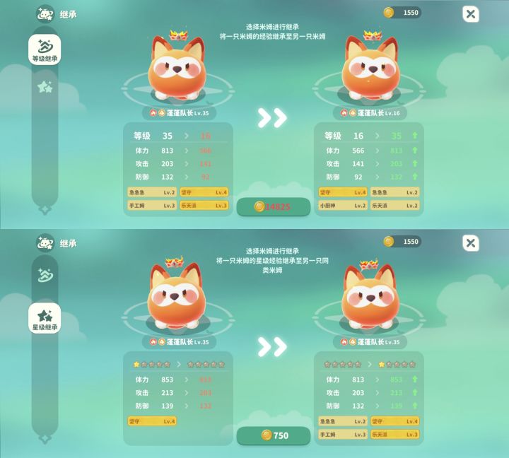 6,增加了“米姆继承”机制,再也不用担心养错米姆啦,抓/生到更好的米姆,只需要花亿点钱转移等级/星级就可以了。让玩家在养成方面少了很多顾虑