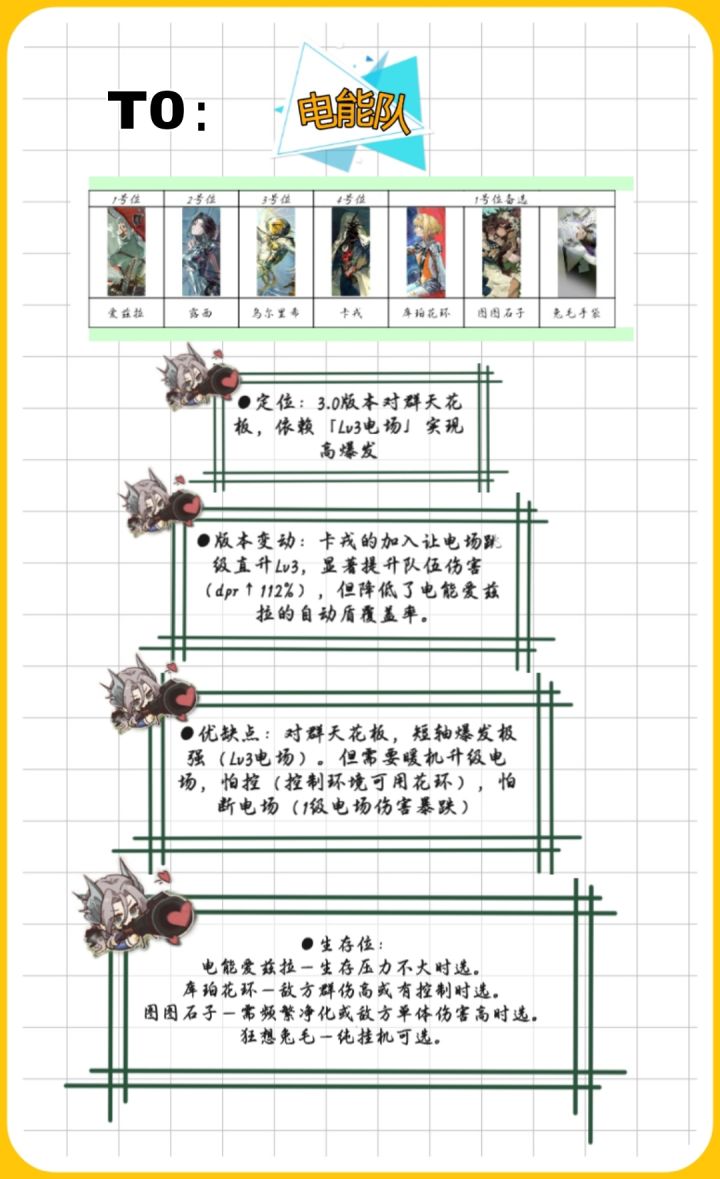●定位:3.0版本对群输出天花板,依赖「Lv3电场」实现高爆发。