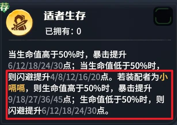 选择专属龙石“适者生存”,适者生存非常适配夜煞天骑的技能模型,提供的暴击率增益,能让夜煞天骑打出成吨爆炸伤害。