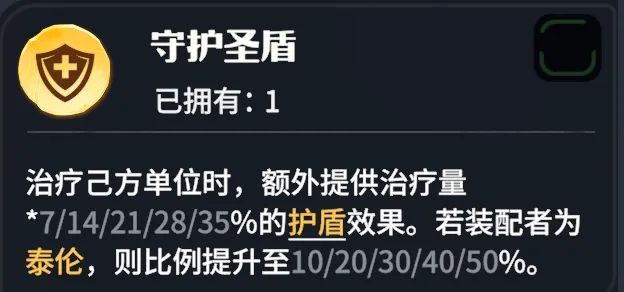 守护圣盾:虽然为泰伦专属,同样比较适配蕾安,配合可以进行范围治疗的灵风之祝,治疗可以同时增加护盾,收益很高。