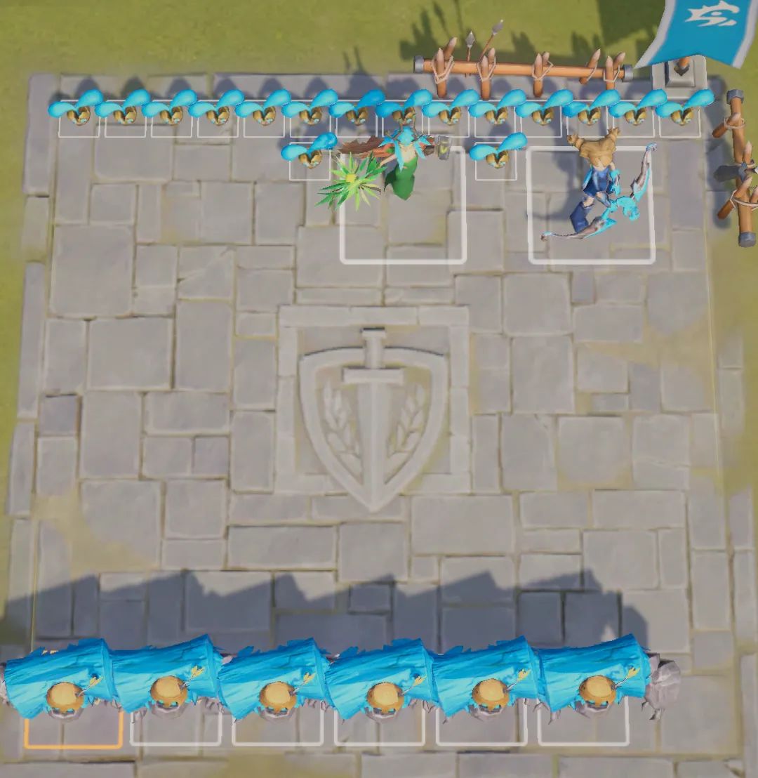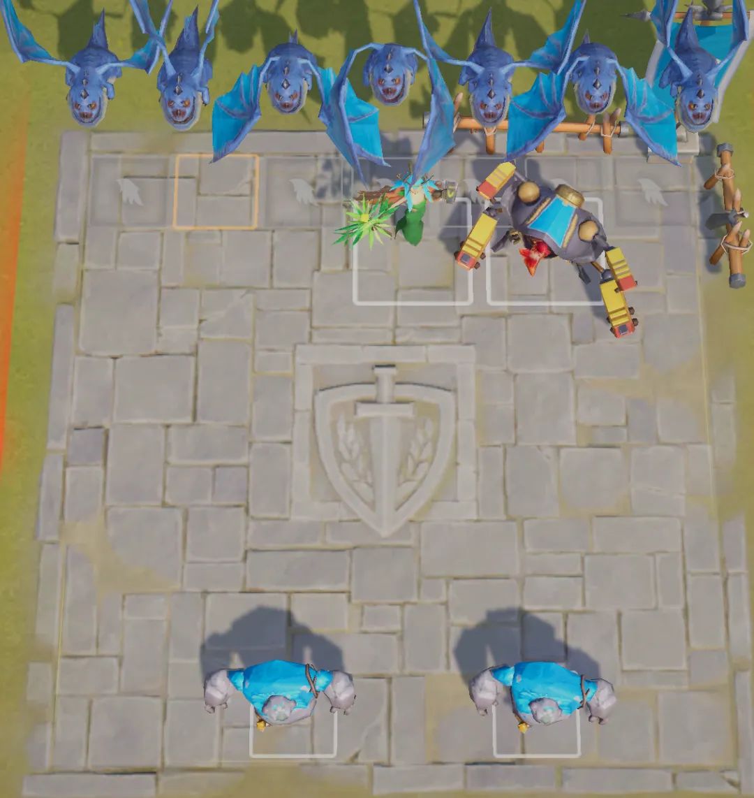 前排顽皮石人抗伤+控制,后排蕾安辅助后排增伤+控制循环,托尔和元素火龙进行范围输出。