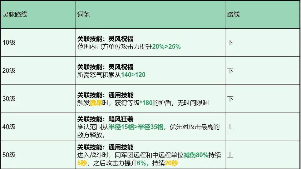 该套灵脉思路为:提升强化后排能力,开场提升自身肉度,防止被秒杀。