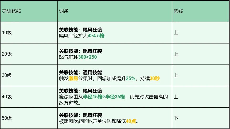 该套灵脉思路为:提升回怒和大招释放范围,极限强化控制能力,如果队伍的前排足够强力则可以选择。