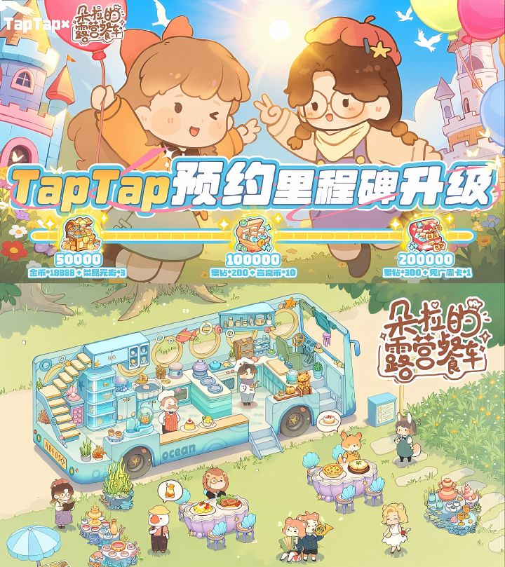 ①预约达到5w奖励→金币*18888+菜品元素*3