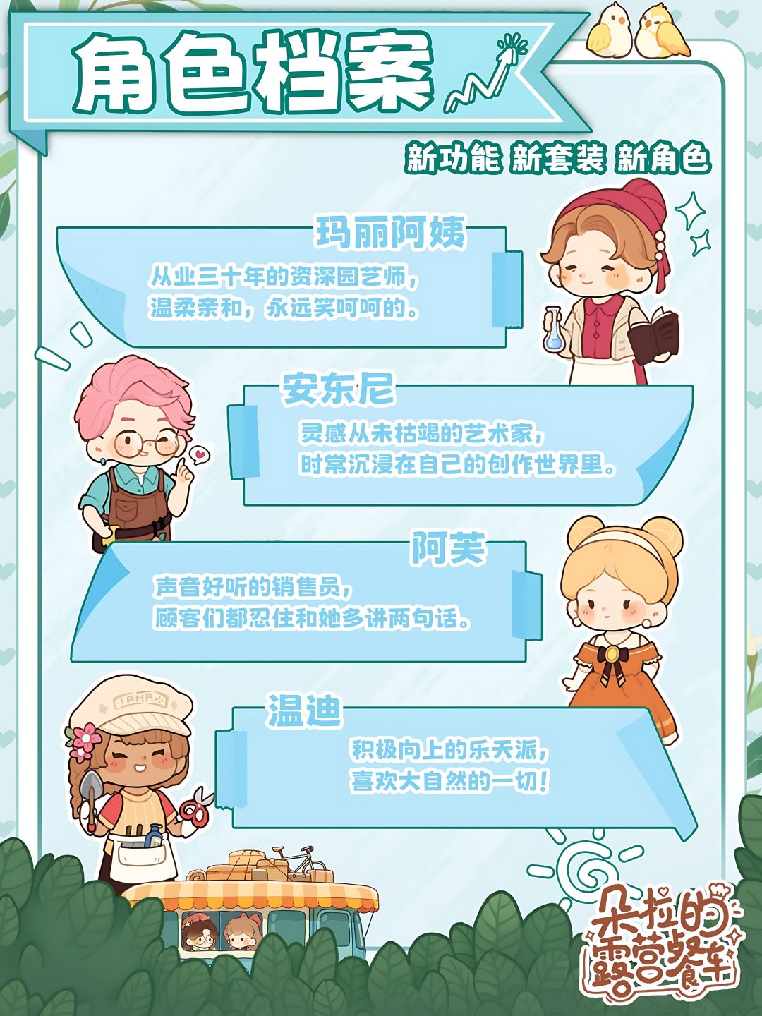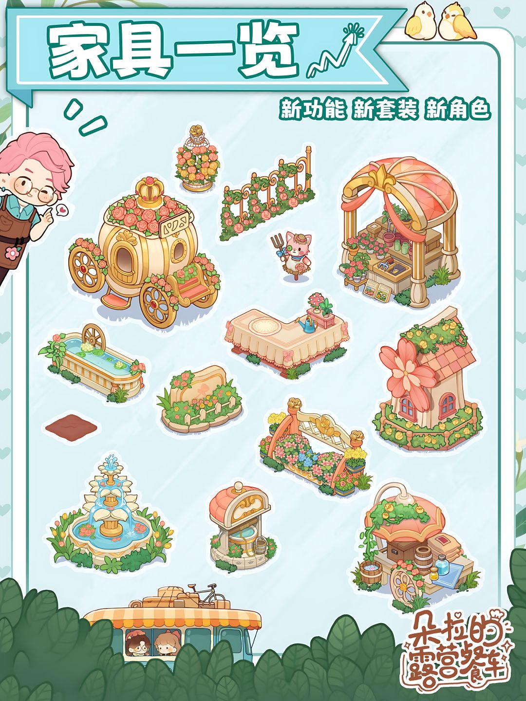 💎游戏玩法:经营餐车 烧烤摊 花园、研发美食、解锁图鉴、种花、装修、旅行冒险、合成扫雷等