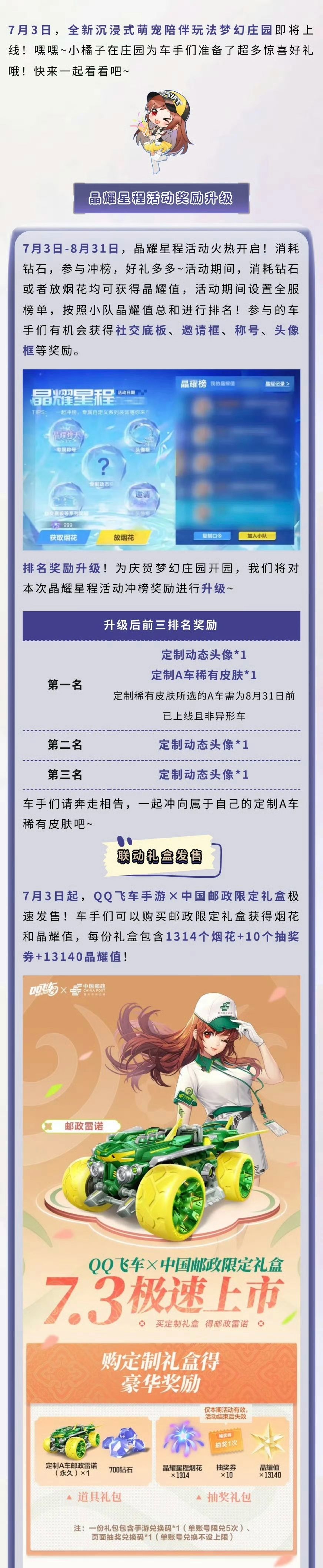 🎆晶耀星程排名奖励升级加码!第一名新增定制赛车皮肤,第二、三名新增定制动态头像!