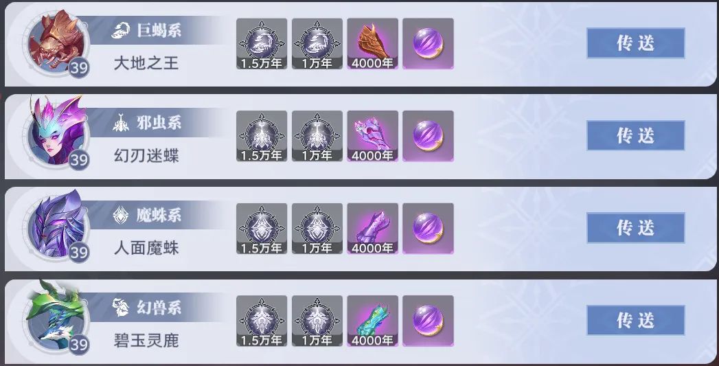 游戏中进入试炼界面可直接传送至魂兽附近,星斗大森林的狩猎魂兽主要包括: