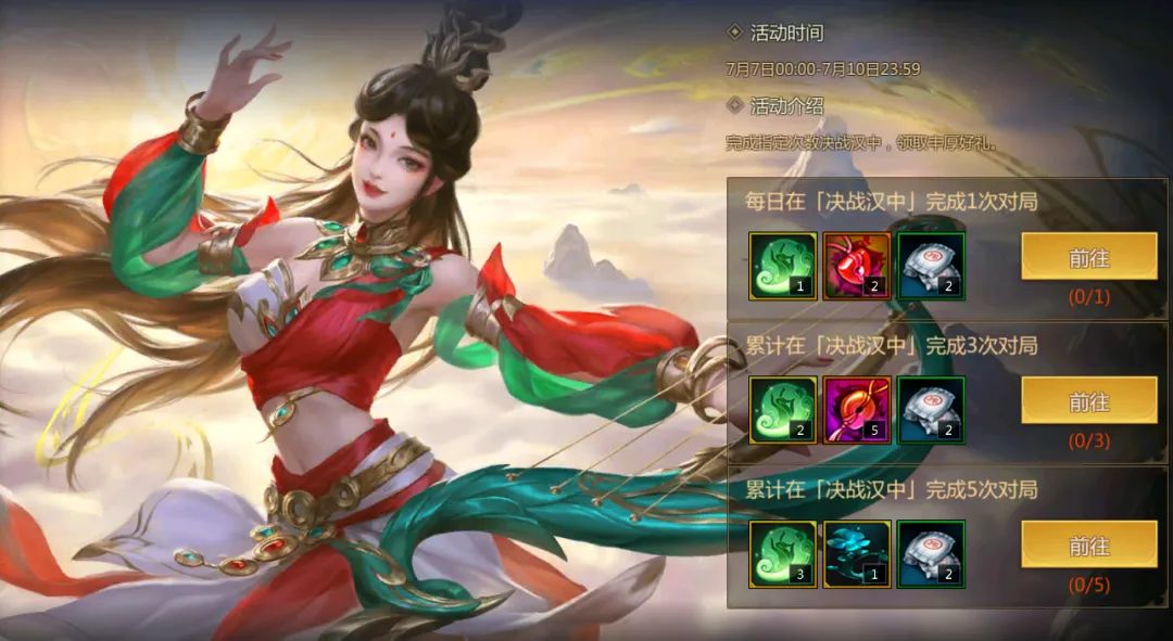 ●【累计】在「决战汉中」完成3次对局,可获得万象玉*2、幸运玉佩*5、兵粮卡*2
