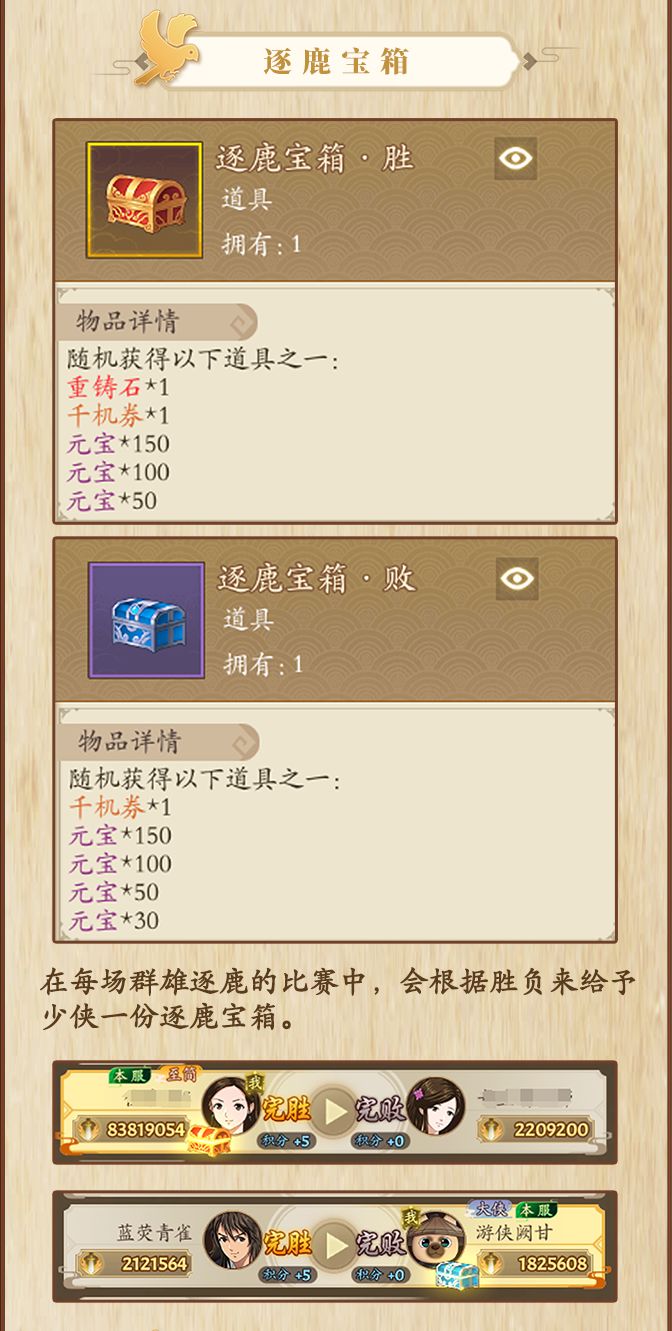 【江湖情报】《群雄逐鹿》奖励介绍