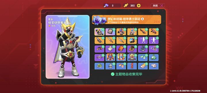 铠甲大金各5个收集齐了 铠甲皮肤也收集齐了