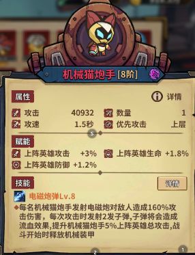 强度介绍:连射的输出实际表现一般,单体不如机械猫,冰冻目前没有什么角色打配合,有待观望。