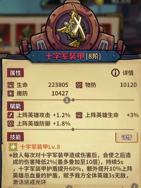 组件升星之路十分漫长,建议抓住一个一直升,直到8阶。8阶提升实在是太大了,优先随从8阶,在弄炮8阶,装甲不建议换,装甲没了buff就没了,哪怕8阶装甲也无法长久存活。