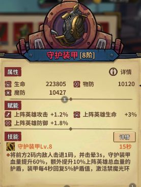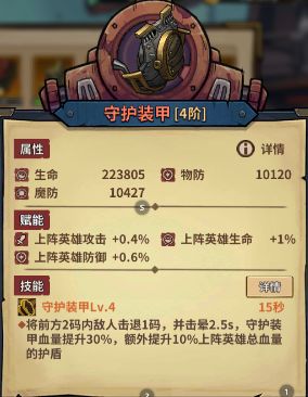 特别介绍:这降攻15%不比守护那3%香多了,名副其实最强装甲。