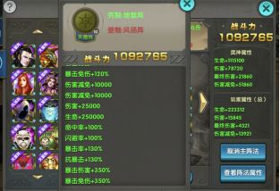 四大阵法的基础属性相同,加成效果取决于阵法中武神的总战力: